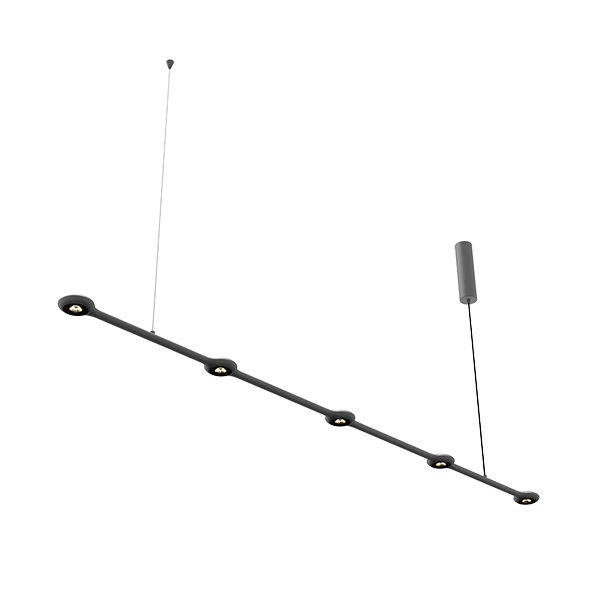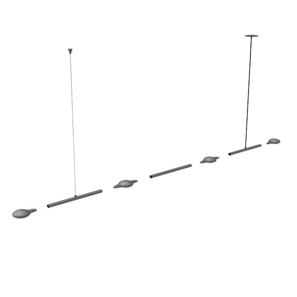 Состоит из светильников с направленным и рассеянным светом и соединительных подвесных элементов.