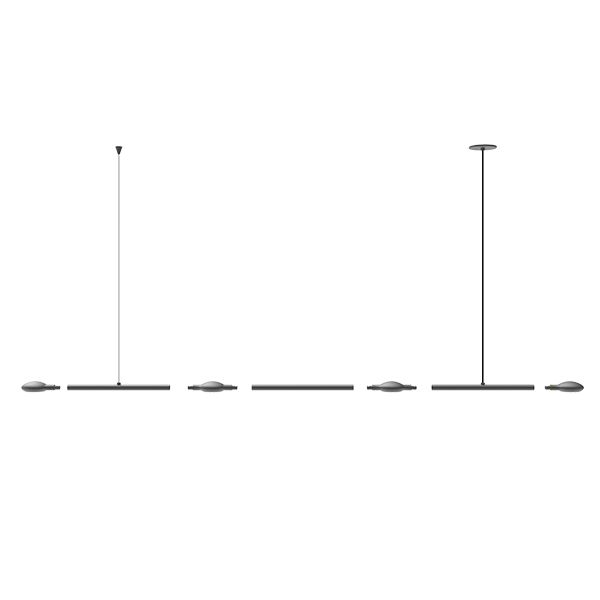 Состоит из светильников с направленным и рассеянным светом и соединительных подвесных элементов.