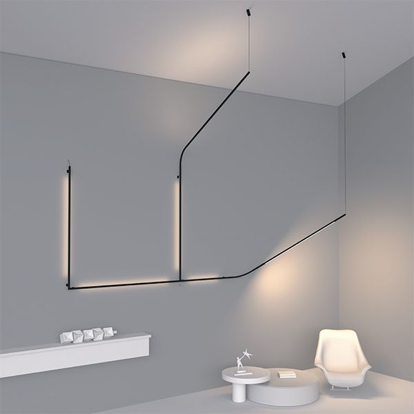 Ннизковольтная система PIPE, состоит из тонких трубок, поворотных спотов, подвесных тубусов.