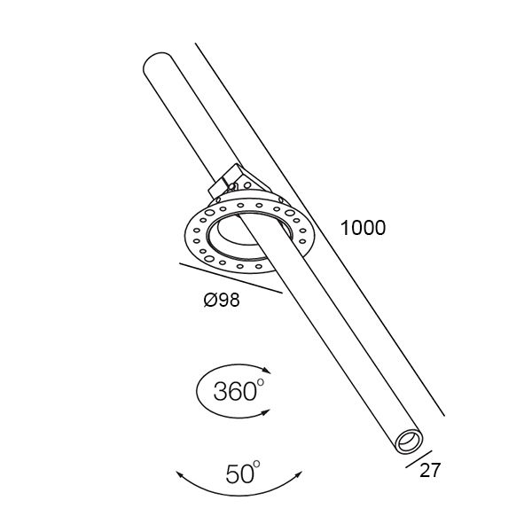 Встроенный безрамочный светильник в виде тонкой трубки PIPE TELESCOPE TRIM.